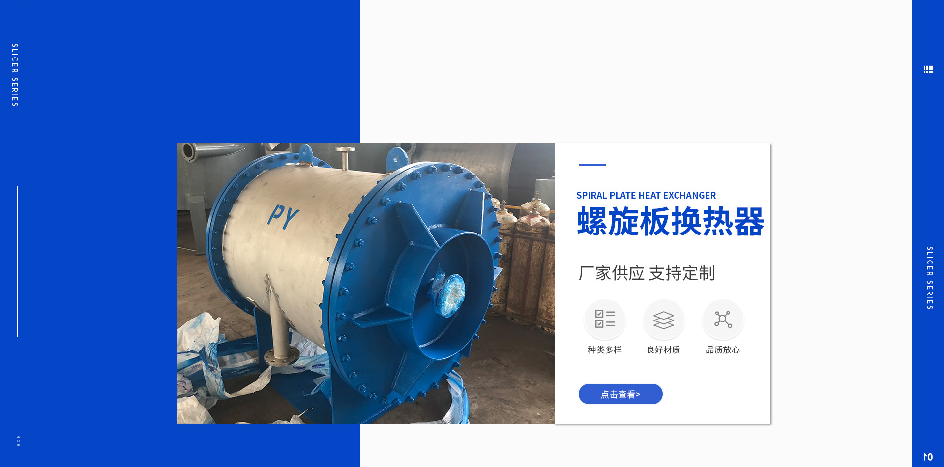 生產(chǎn)各類切片機(jī),螺旋板換熱器的專業(yè)公司可根據(jù)用戶要求進(jìn)行非標(biāo)準(zhǔn)設(shè)計和生產(chǎn)。